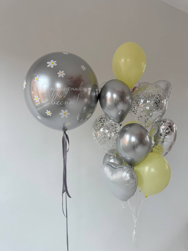 Шар гигант серебро с индивидуальным оформлением и надписью;